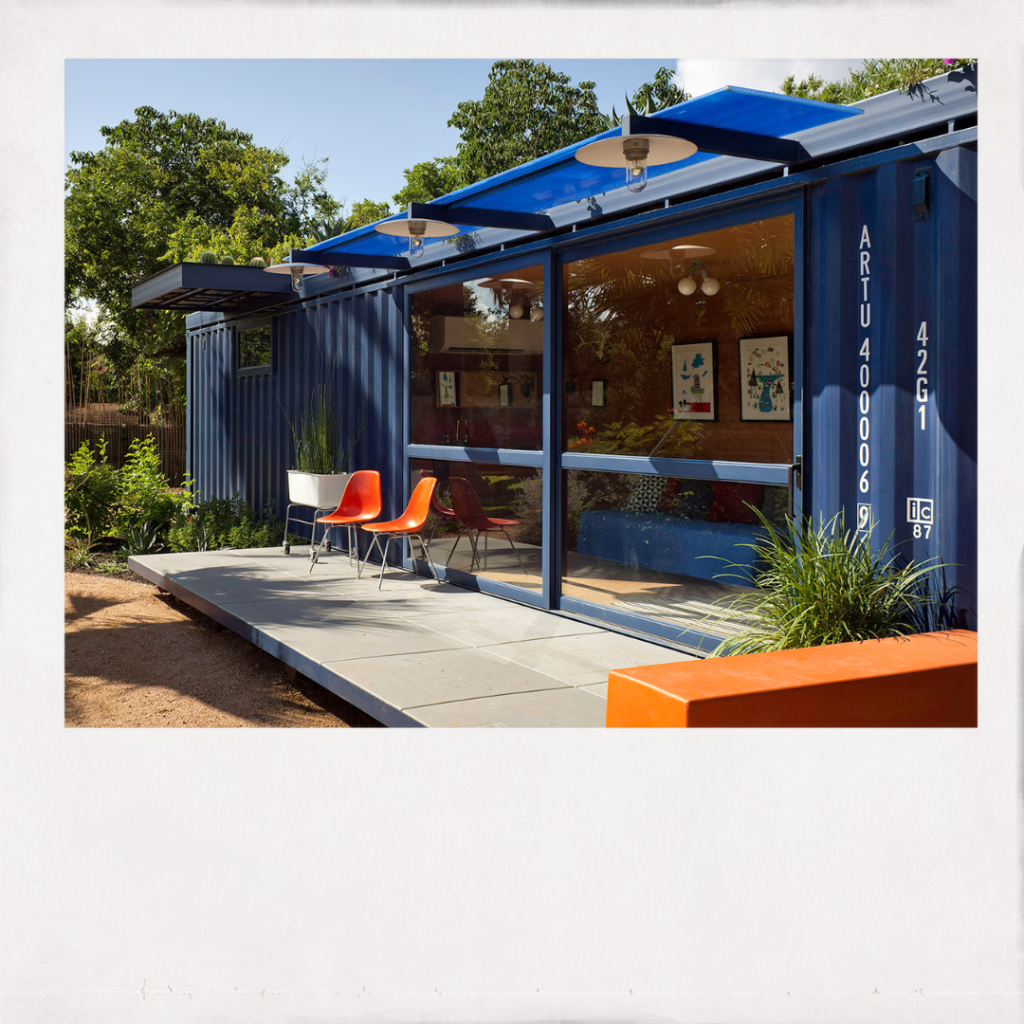 Designed by Poteet Architects, this compact guest house features a single shipping container with a modern and vibrant design. It showcases how a single container can be transformed into a stylish and functional living space